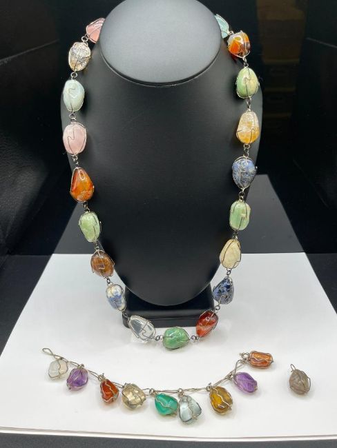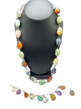 25" NECKLACE, 7 1/2" BRACELET, UP 1" STONES